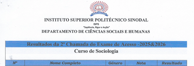 ComunicadoO Instituto Superior Politécnico Sinodal (ISPS) torna público que já se encontram disponíveis os resultados…